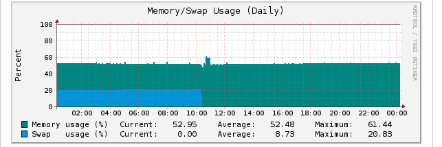 However memory swap climbed almost instantly to over 50% of RAM.  I know there has been some discussion on swap usage, but am unsure of the outcome.  CPU looks fine.