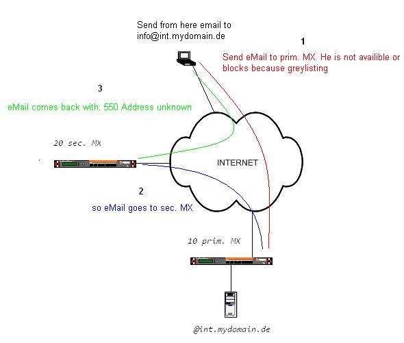 4. This sends the eMail back to sender with the error: 550 Adress unknown.