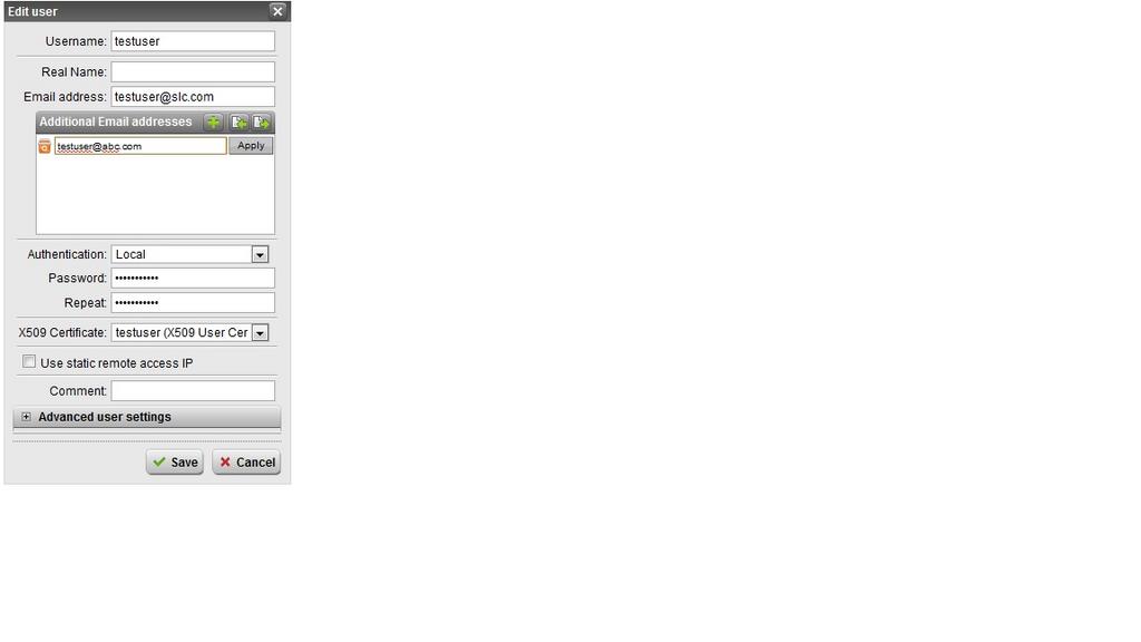 • This is a possibility.  We can try manually adding the correct email address to a user account in Astaro as an additional address and see if that helps.  See the attached screenshot.
