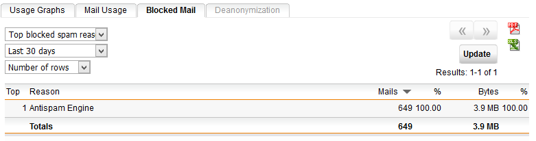 Have a look at the attached pictures. There are over 600 blocked spam mails, but the statistics only shows 58 total processed mails?