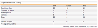 The items in the sandbox activity log are only items downloaded from the web.  All emailed items which have been scanned only exist in the SMTP log as far as I can make out so you can't get a report on them, just a line in the log to say it's scanned ok or scanned malicious.  If they can get everything into the sandstorm log with reports it would be much better, but at least I can find everything that has been scanned now and prove it's working!