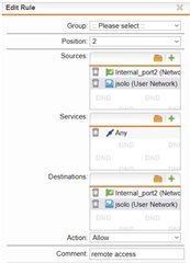 2. Put "Jsolo (user network)" and "Internal_port2" both into both "Coming from ..." and "Going to"