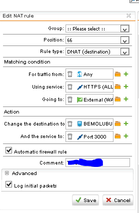 • Normally the NAT rule was on position 66 but for testing purposes I did put it on the first line.