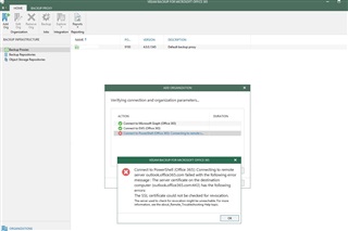 Quick question - trying to install a demo of Veeam Office 365 to evaluate it but the final step is adding an Office 365 Organisation and its failing on the step where its Connecting to Powershell (Office 365) with an error stating that: The Server Certificate on the destination computer (outlook.office365.com:443) has the following errors: the SSL Certificate could not be checked for Revocation.