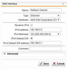 The current internet comes in on eth1 via PPPoE and works fine.