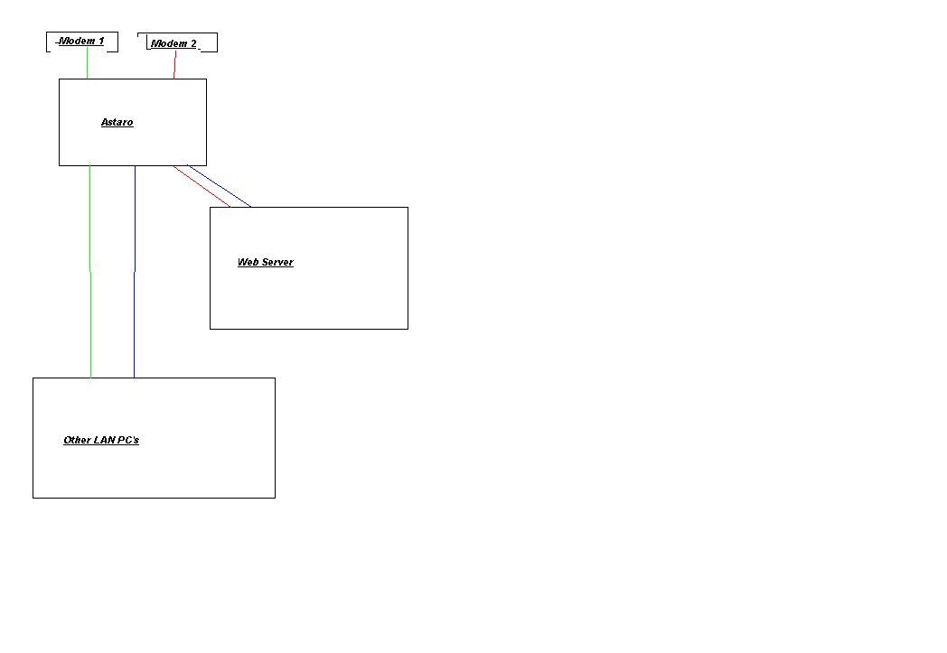 • bah that sounds like too much of a nightmare. I got the 2nd line installed yesterday and didn't even get a chance to try to config it with astaro becuase neiter of the NIC's that I had laying around were detected at all    . Intel Pro & Reaktek. So now I have to find a nic that is compatible. I am really up for any ideas that anyone has to achieve what I am trying to do.