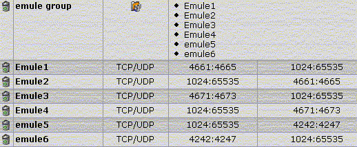 e.g. type: DNAT/SNAT | source address: any | destination address: external address | service: eMule TCP | change source to: no change | change destination to: whisper (the name of the computer where I run eMule) | service destination: no change