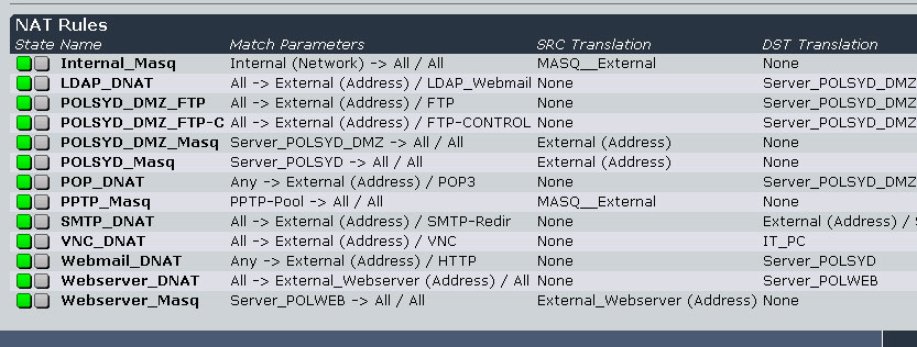 A short tip on the way, NAT tables are handled like the packet-filter, fromt top to down.