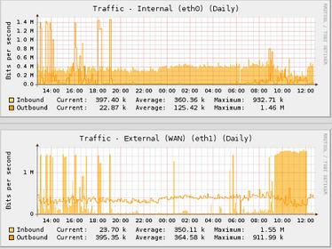 Is there a way to see which machine is CURRENTLY using the bandwidth?  As you can see from the pictures I spiked my T1 for about 2 1/2 hours.  I couldn't find the culprit though.  Can someone tell me where to find the current usage stats.  I know I can get them from the executive report later, but thats not helpful now.