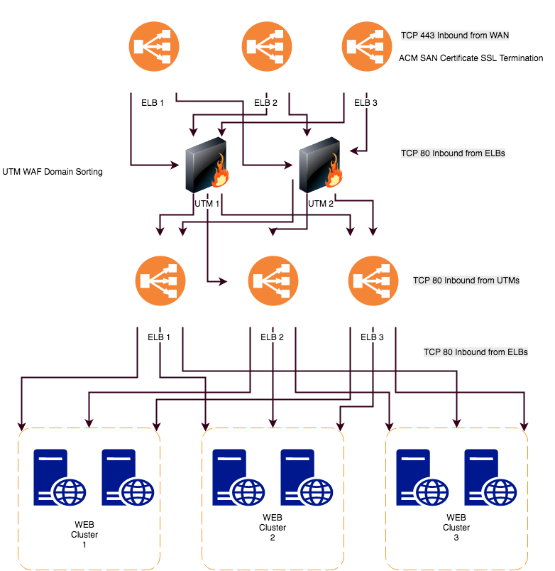This isnt working for me. I ha e multiple upsteam ELBs terminating SSL, the forwarding to Sophos on TCP:80. The WAF rules need to filter to different backends based on the source they receive a request from, but the ELB only has a public address, it sends to instances on a VPC private address, and these requests never get past the firewall. :(