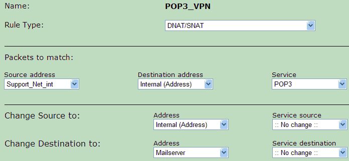 (A) -> (B)Internal (Address) / POP3 None (C) Mailserver