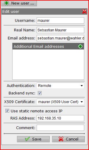 In the user section, i´ve created a user (Backend sync - see attached image) and give the user a static ip-address (192.168.35.10),but if i connect over pptp the assigned address is from the pptp pool an not from the user configuration.