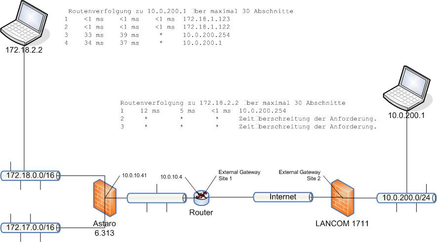 The connection is established and I have access to the PC on the other site but I dont have access from the LANcom site to the PC on my site.