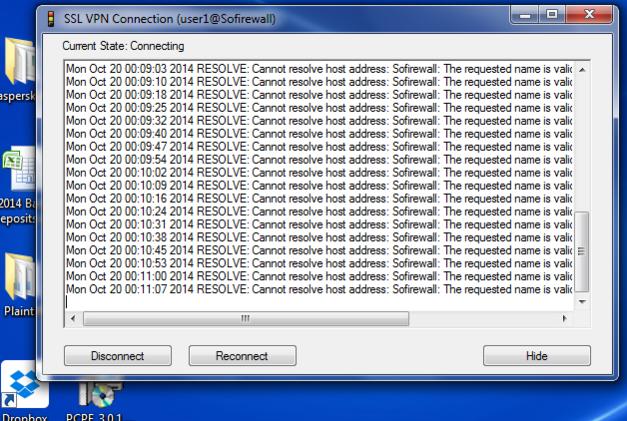 A user duly log in using the ssl vpn client but cannot access resources and the error message as follows :Mon oct20 12.28 resolved: Cannot resolve host address: sofirewall: The requested name is valid but no data of the requested