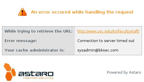 2008:02:26-14:05:34 (none) httpproxy[4628]: id="0002" severity="info" sys="SecureWeb" sub="http" name="web request could not be delivered due to an error" action="block" method="GET" srcip="10.x.x.x" user="***" statuscode="502" cached="0" profile="profile_3" filteraction="action_REF_pHeOpmRYdU" size="2148" time="46 ms" request="0xb1e749f0" url="http://www.lawtel.com/" error="Server closed connection unexpected" category="0450" categoryname="Literature / Books"