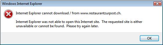 When trying to access www.restaurantzurpost.ch an error pops up in Internet Explorer. I've attached a screenshot.