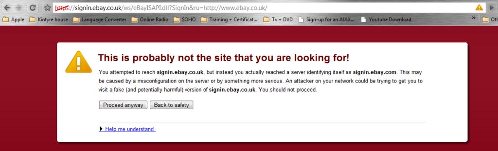 It is strange cause ebay.com works fine. I think this happens because the cert of ebay.co.uk is the ebay.com. I 've attached the relevant pics