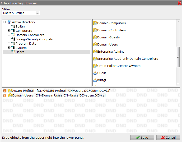 as in the screenshot, i have 2 groups "domain users" and "astaro prefetch"