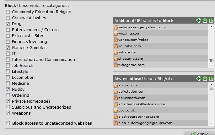 • Carlos, to be honest with you, none of my customers has such extensive block or allow lists any more.  Looking at your HTTP log, I'm almost certain that you also have tubegame.com in the Allow list since there's no categorization looked up for it.  I think Allow has priority over the Block list.