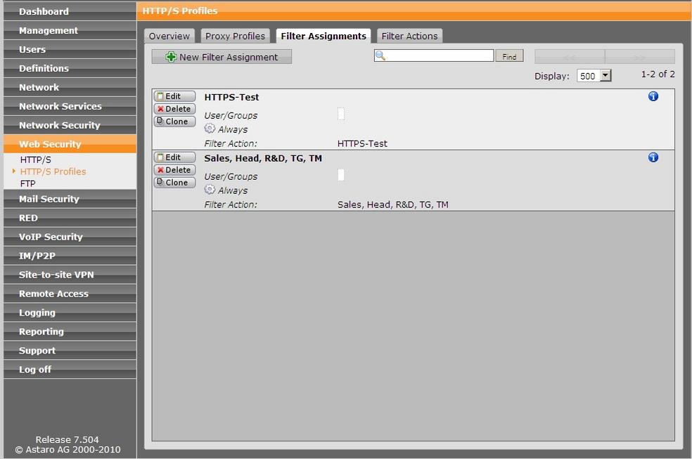 Now I want to try HTTPS traffic scanning. So at first I thought creating a profile for my client linked to the default action, default assignment and with HTTPS traffic scanning enabled will work.