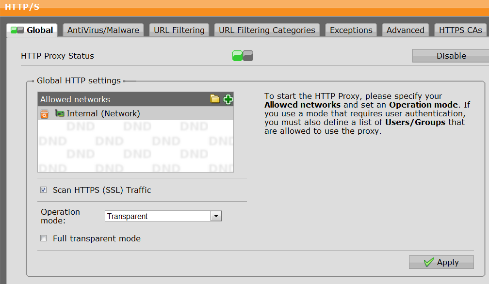 • Please show pictures of the 'Gloal' and 'URL Filtering' tabs in 'Web Security >> HTTP/S'.