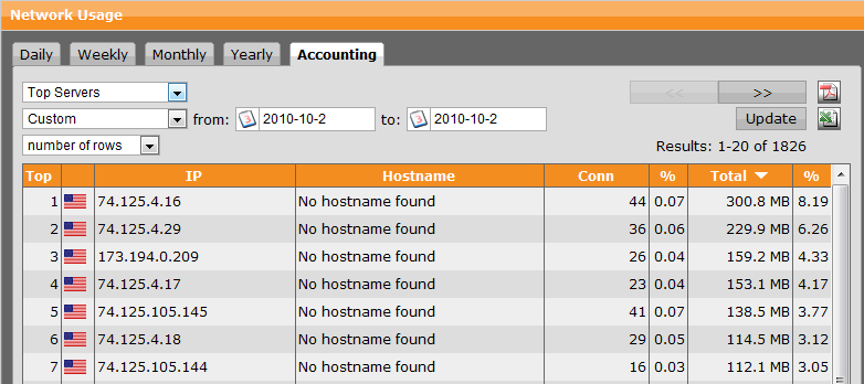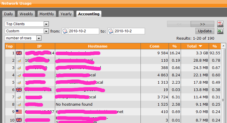 TOP ----------- IP---------- SERVER NAME-------CONNECTIONS -----TOTAL