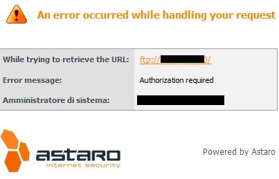 Connecting to a password protect FTP server, FireFox ask for username and password with a popup. Internet Explorer does not request the login informations but an Astaro page appears saying "Authorization Required" (see screenshot). Obviously if you modify the FTP address inserting username and password in the url, the ftp connection is started successfully.