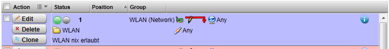 On a second interface is a vlan tagged network called WLAN. And in the 'Network Security' section is a firewall rule to deny erverything from that network on position 1. This configuration worked fine until the update.