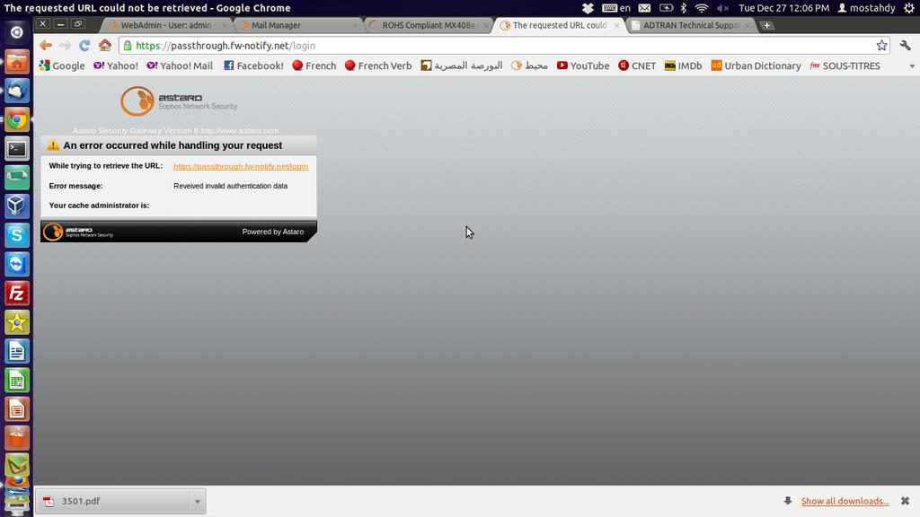 I have ASG version 8.203 software version, When I try to browse through Google Chrome (16.0.912.63) and enter my credential in Astaro login page I receive this error message "Reveived invalid authentication data", please see the attached snapshot