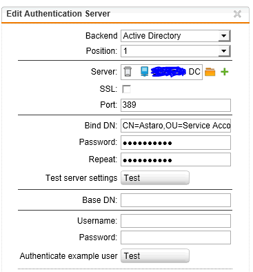 The only thing I see that might be missing is I have no Base DN for my authentication server.  If I test the login of one of the users in my "full access" group this is what I get: